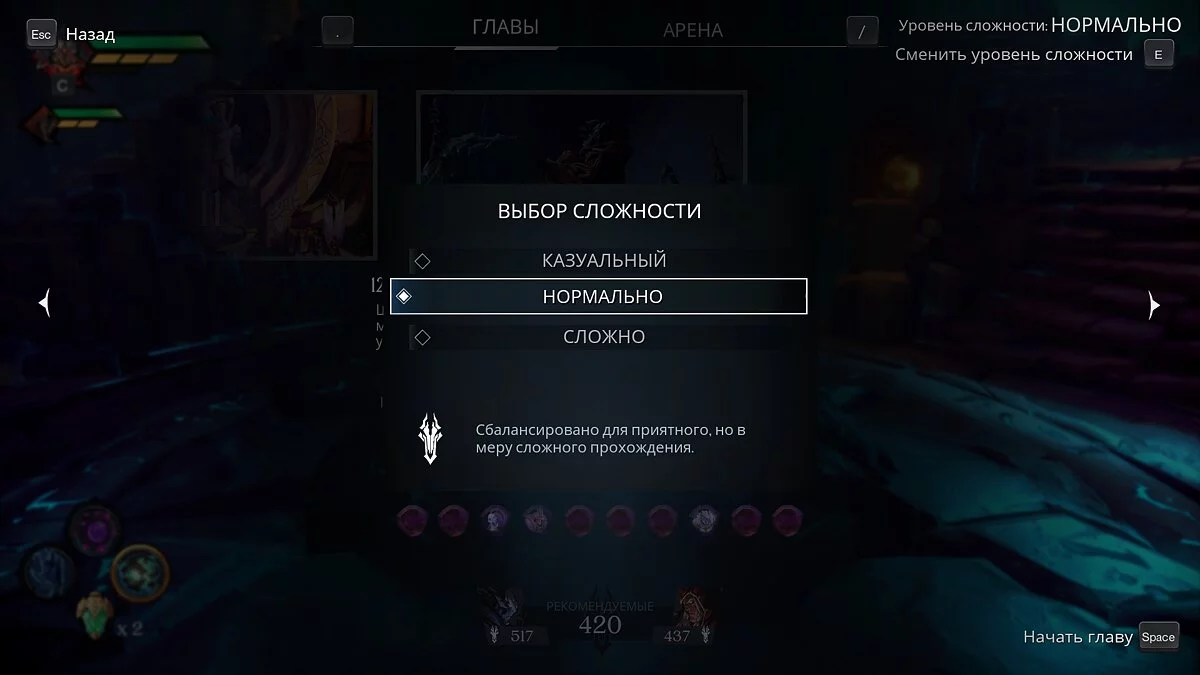 Сложность меняется на экране выбора миссии, если нажать клавишу E (треугольник или Y на консолях). Не самый очевидный способ, можно и не заметить