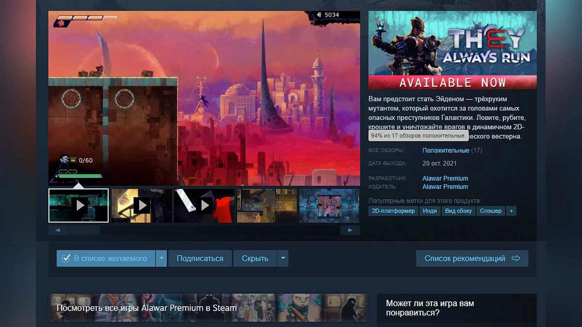 Купить They Always Run можно в Steam, GOG и Epic Games Store за 449 рублей.