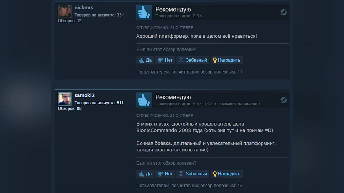 Игра получила от геймеров очень положительные отзывы. Так, к примеру, на момент написания новости ее рейтинг составляет 94%. Среди главных плюсов игроки выделяют захватывающий сюжет и проработанную боевую систему.