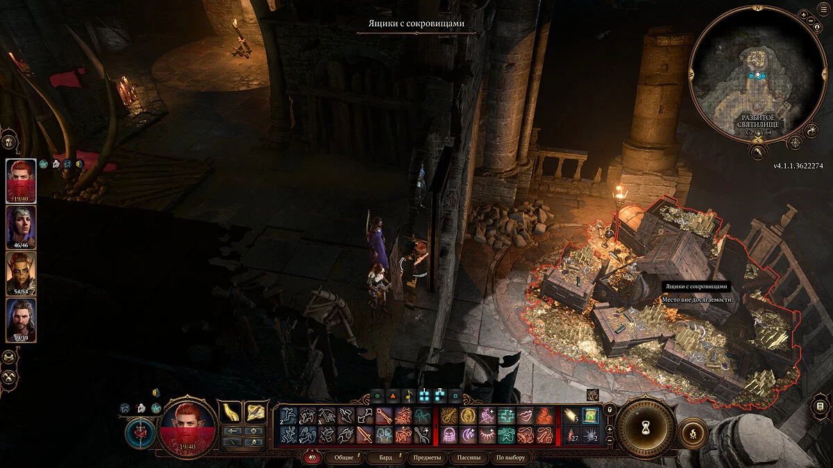 Нас интересует ящик с сокровищами, который находится за запертой дверью в самом конце. Чтобы взломать её, необходимо выкинуть 20 и больше очков. Советуем взять Астариона, который имеет необходимый навык, а также благословить его с помощью заклинания «Благословение», которое может знать Шедоухарт.