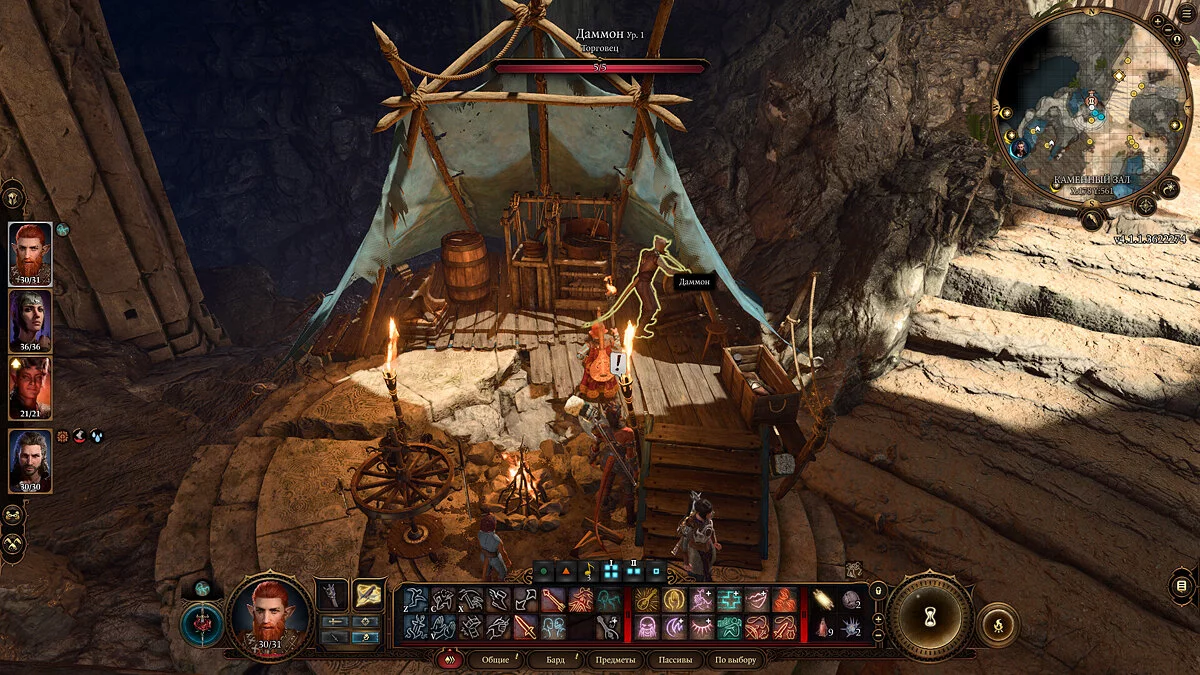В первую очередь нам необходимо найти механика, который знаком с «адскими» устройствами. Сделать это довольно просто — по стечению обстоятельств адским механиком оказывается единственный известный нам на тот момент кузнец, тифлинг Даммон. Его мы можем найти в Роще друидов. Чтобы как-то держаться на плаву после бегства, он открыл свою лавку и торгует различным оружием и броней.