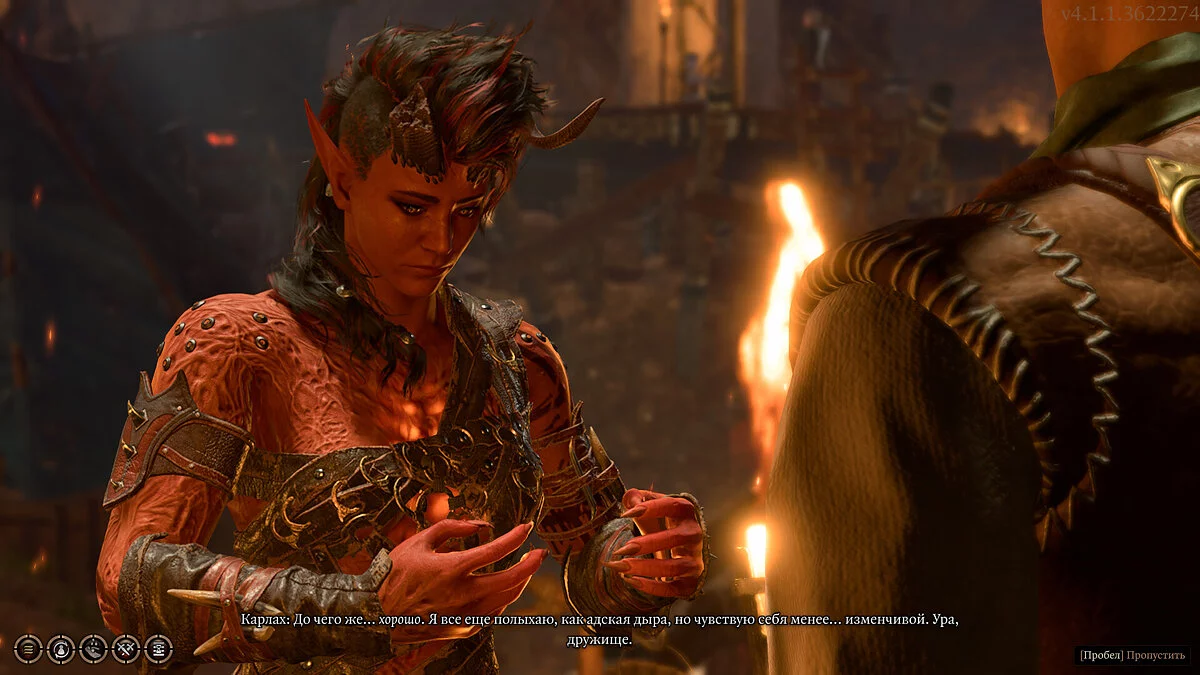 Начните с кузнецом диалог, имея в отряде Карлах. Тифлинг осмотрит варваршу и предложит свою помощь. Для того чтобы хоть как-то наладить адский движитель, Даммону потребуется адское железо — редкий и ценный материал. Поэтому, если к тому моменту вы уже отыскали всё необходимое, передайте железо и посмотрите катсцену.
