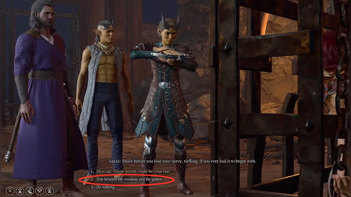 Если вы спасёте Саззу, то ваши спутники примут сторону гоблинов и будут воевать с тифлингами. Этот выбор считается злым. Паладины, которые идут по пути древних или возмездия, подобным действием нарушат клятву. Подробнее об этой механике мы рассказали в отдельном руководстве.