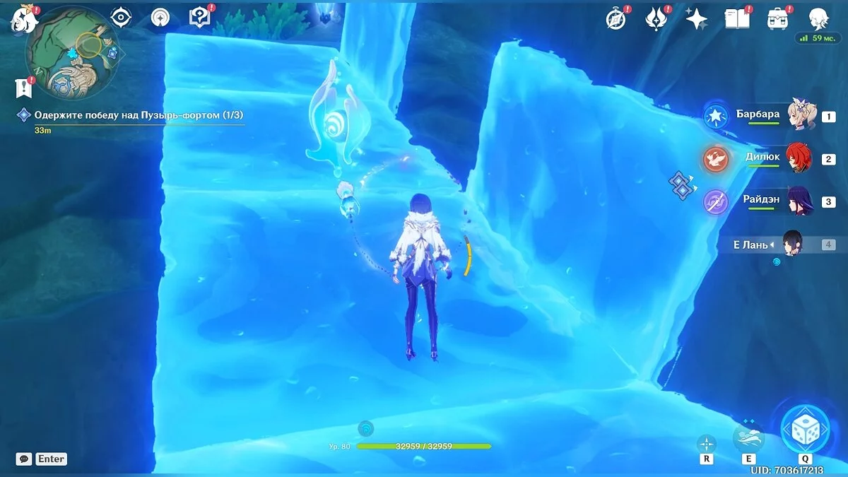 Поднимитесь к башне и побеседуйте с элементалями воды — задание обновится. Нужно одолеть три пузыря, находящихся в данной локации. Вы можете начать с любого, но мы рекомендуем в первую очередь отправиться к пузырю справа.