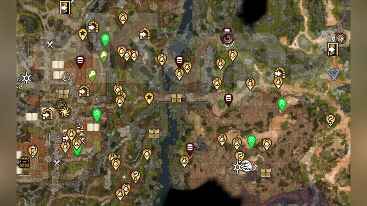 Отметим, что Baldur's Gate 3 — большая игра, наполненная тысячами секретов. Поэтому, несмотря на все усилия энтузиастов, пока что не все предметы и квесты имеют собственные отметки. Если вы не нашли объект интереса, попробуйте зайти позже или поискать необходимое на второй карте, о которой мы также расскажем.