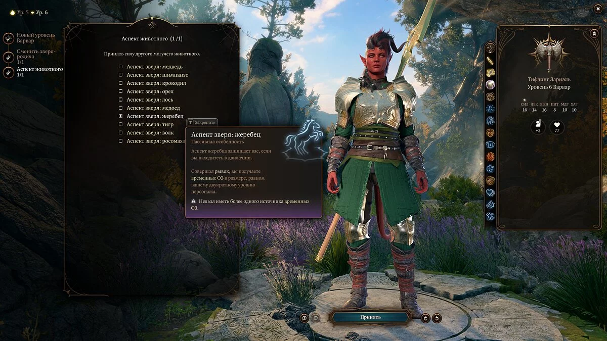 Варвар-танк. Какой аспект животного выбрать на 6 уровне
