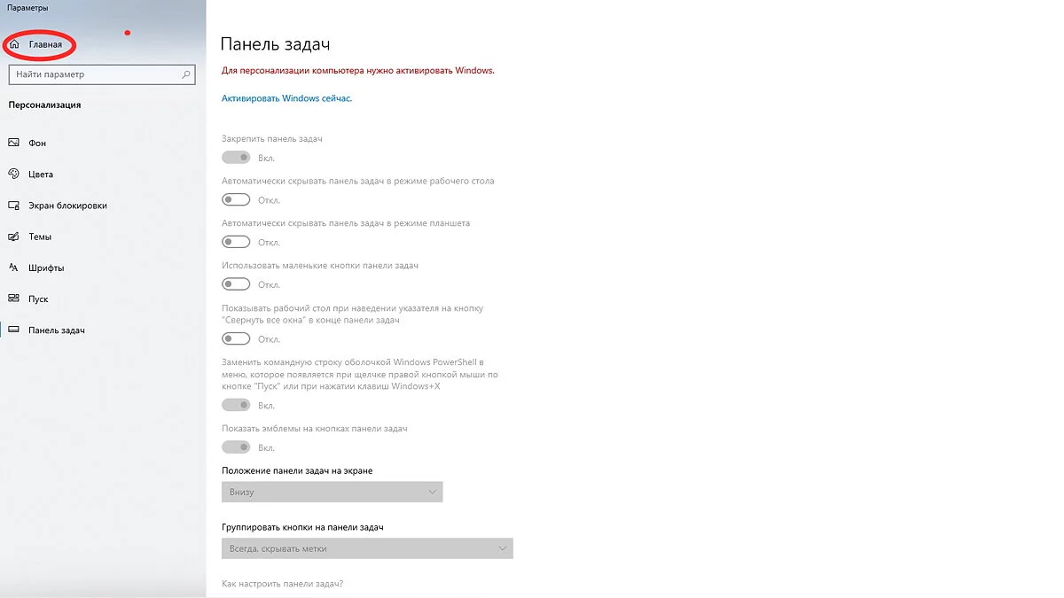 - Откройте пункт «Главная» в левом верхнем углу экрана.