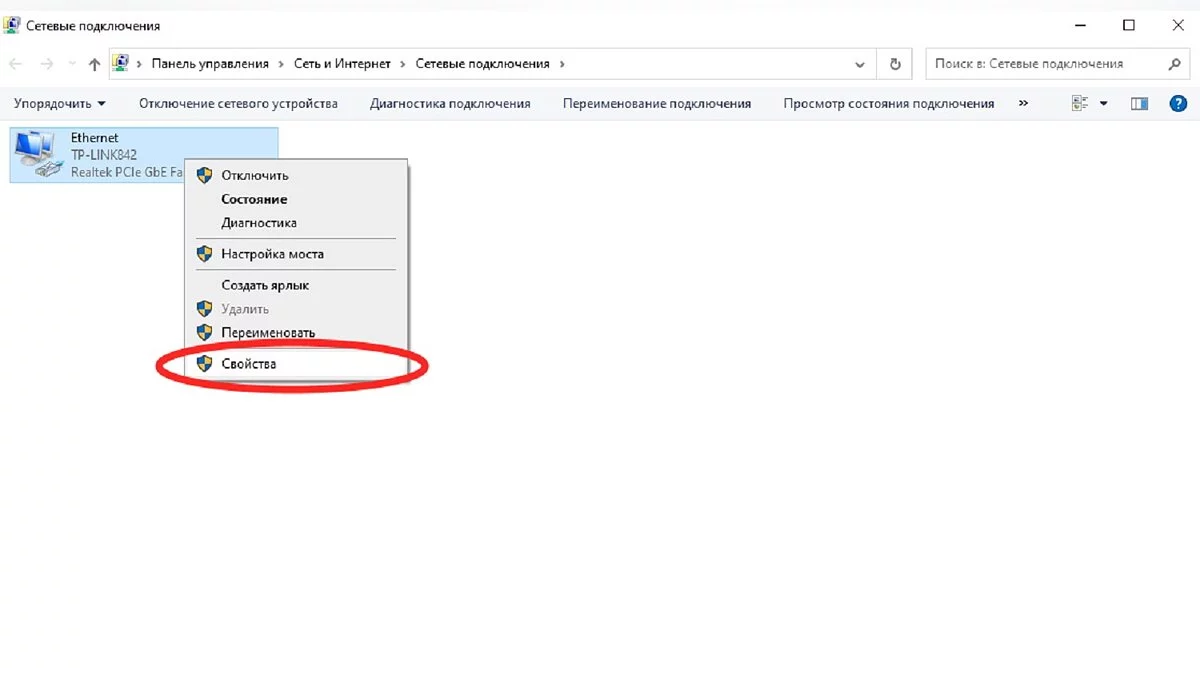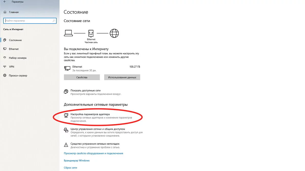 - Нажмите по пункту «Настройка параметров адаптера», щёлкните по вашему текущему соединению и выберите окно «Свойства».