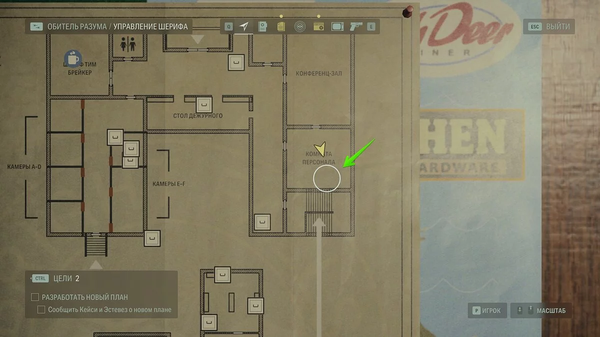 - Локация: Брайт Фоллс, управление шерифа, комната персонала.
