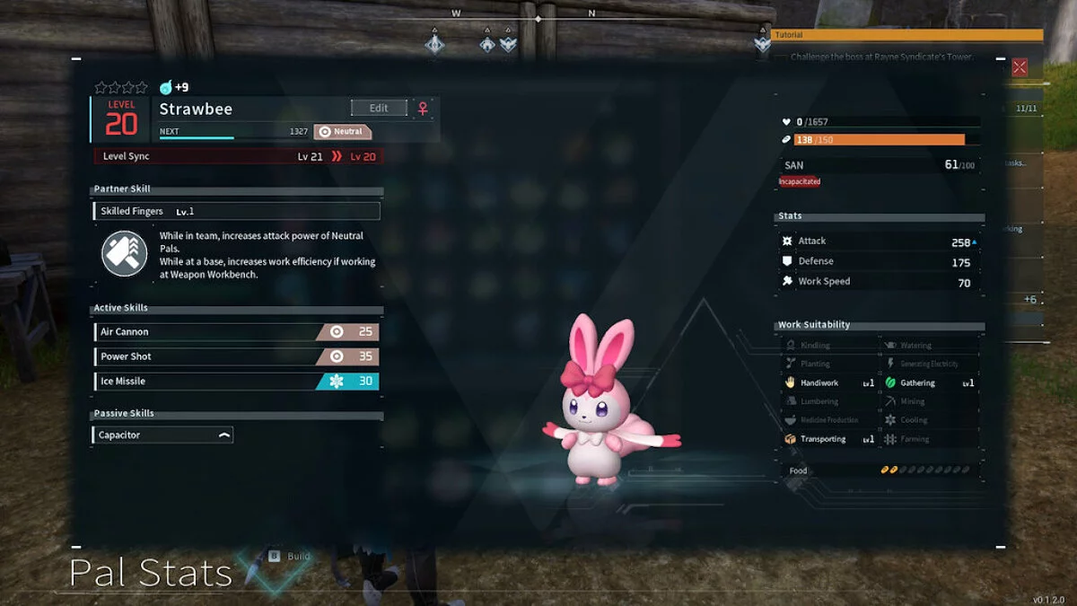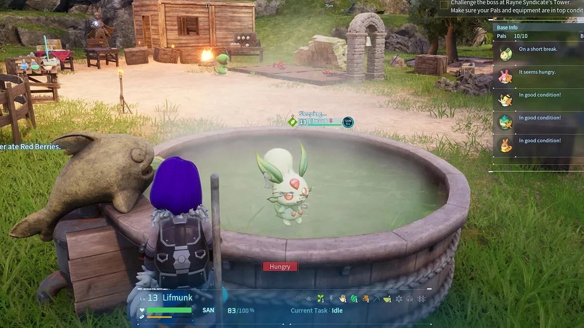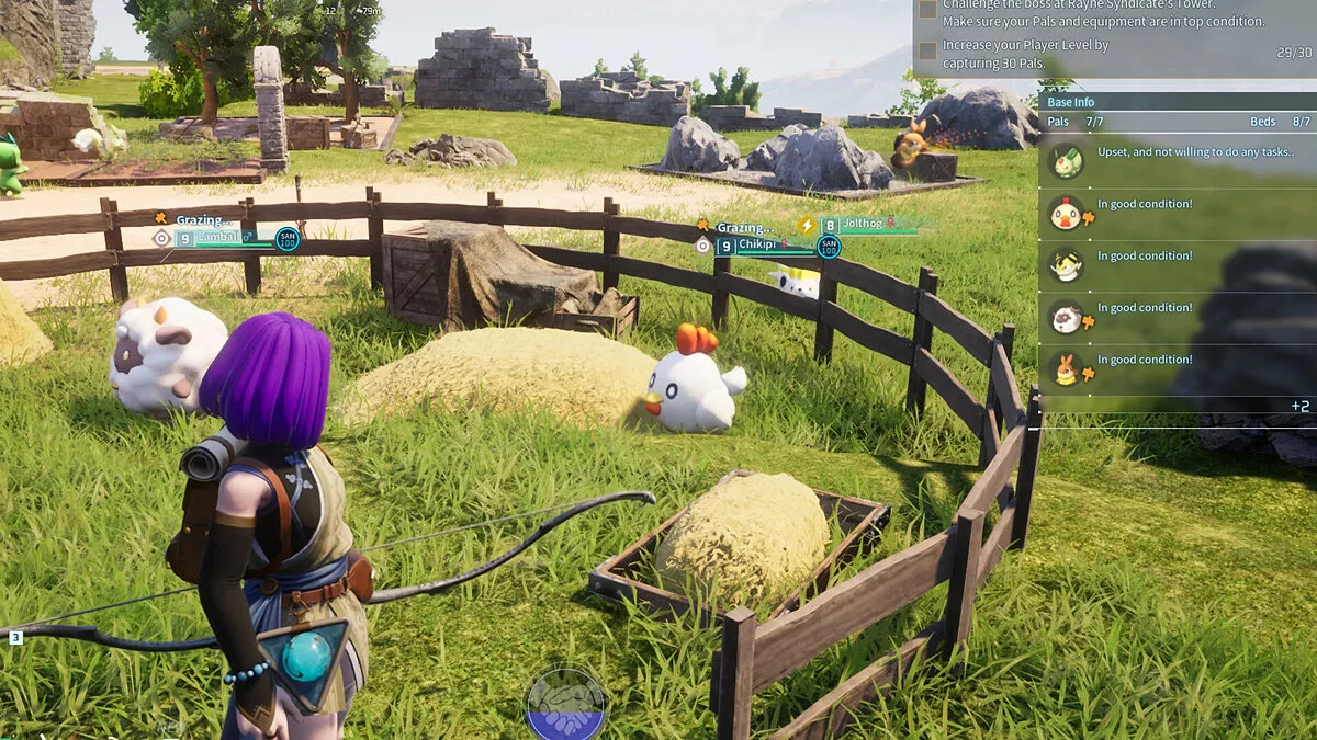 Этих милых компаньонов можно отправить работать на ранчо или ягодные фермы, что делает их доступной рабочей силой для удовлетворения первых потребностей на старте игры. Если вы заведете на ранчо сразу несколько таких, они дадут большое количество яиц. Самый быстрый способ повысить уровень Палов в команде (по крайней мере, на первых нескольких уровнях) — это готовить яйца на костре или последовательно изготавливать стрелы. Процесс крафта или приготовления пищи приносит немало опыта.