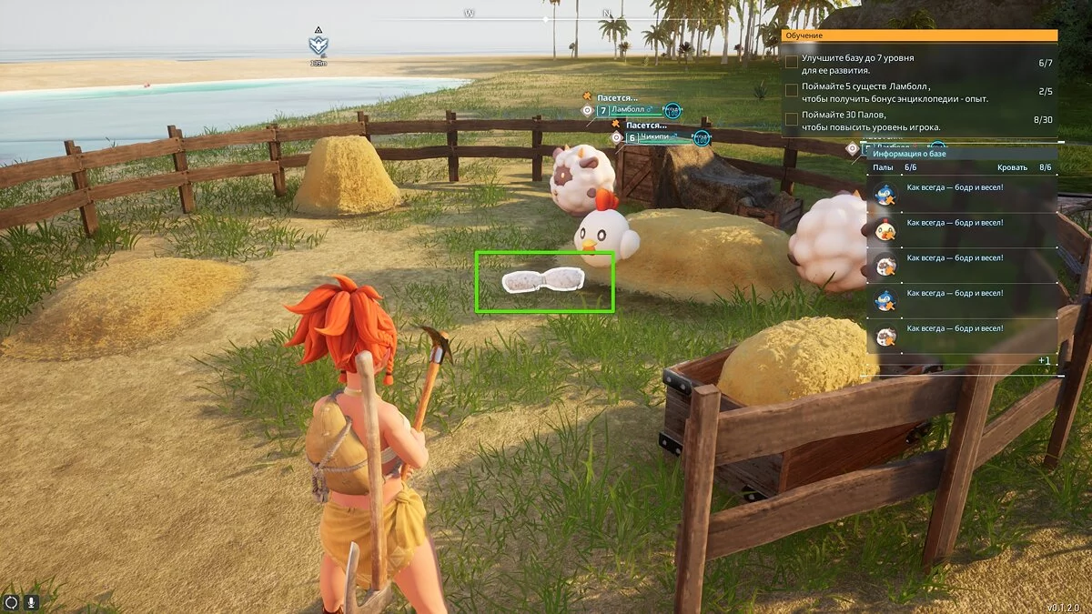 Создав пастбище, ламболлы, чикипи и другие существа начнут работать здесь. Можете время от времени возвращаться к объекту для сбора шерсти или потом найти стак в своём сундуке, куда его любезно доставят пенгуллеты, лизпанки или другие палы-работники.