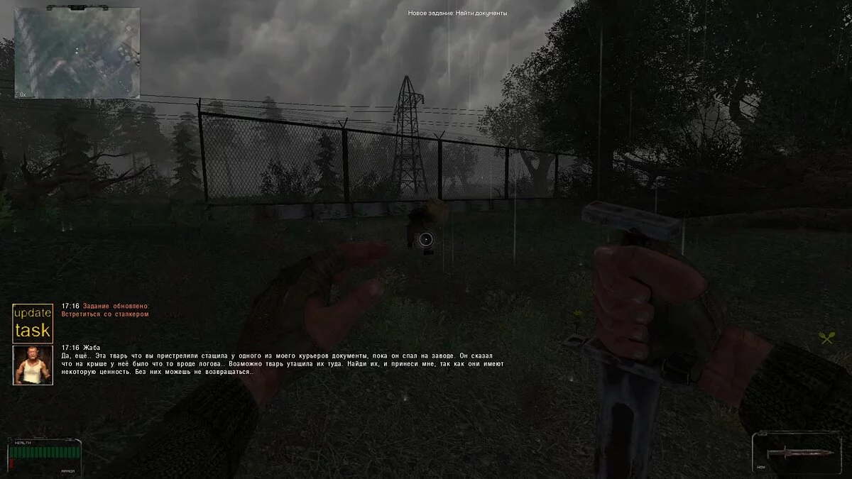 Побеседовав с новым приятелем, просто проследуйте за ним к зданию завода. Когда увидите плоть, подождите, пока ваш товарищ убьёт её. После этого в журнале задач появится новый квест «Найти документы». Если не выполните его и вернётесь к Жабе, он не станет разговаривать с вами о делах.