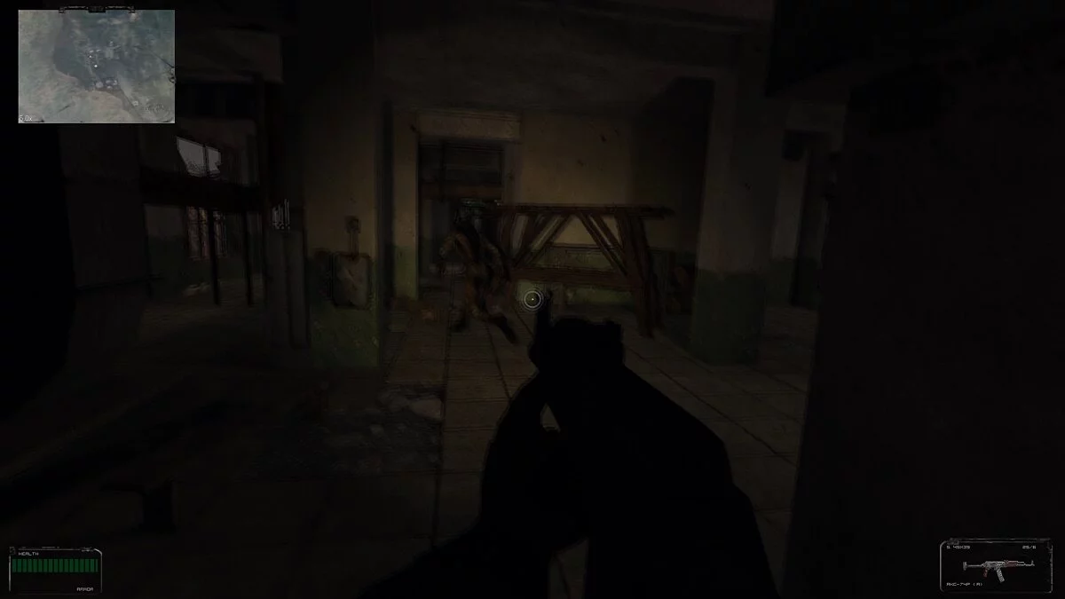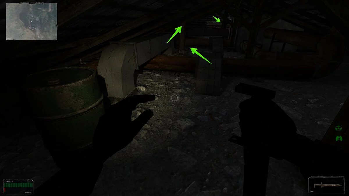 Если вы нашли патроны для ПМ, то выполнить его не составит проблем. Мы это сделать не смогли, поэтому пришлось справляться одним ножом. Рядом с трупом плоти есть вход в здание с двумя корпусами. Вам нужен второй корпус с тремя этажами. Поднимайтесь по лестницам на самый верх (чердак) и следуйте по левой стороне в приседе (возможно, придётся зажать клавишу «X»). На противоположной части чердака на полу лежат патроны, аптечки и нужные по квесту документы.