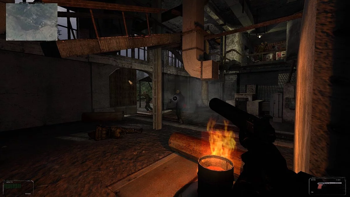 Теперь придётся снова посетить территорию завода, чтобы спасти пропавшего командира военных. Рекомендуем до этого момента не тратить патроны, поскольку они понадобятся в самом здании комбината.
