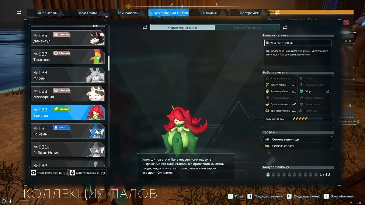- Бристла — водится в лесах и нередко имеет высокий уровень. Умеет сеять семена, собирать урожай и работать руками;