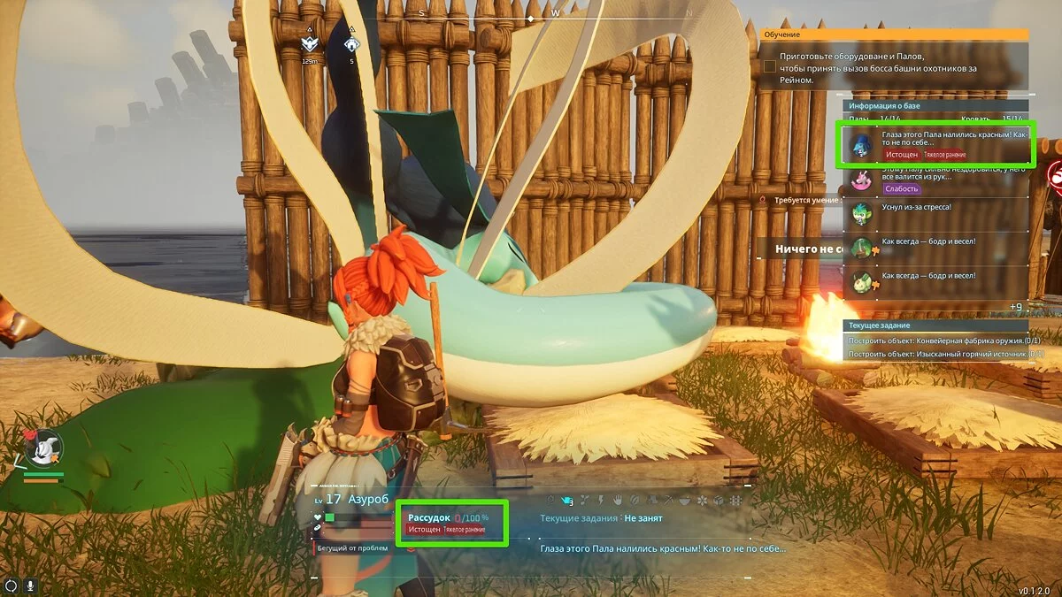 Мы рекомендуем отправить пала в контейнер и подождать некоторое время. Таким образом вы не только избавитесь от ранения, но и восстановите рассудок существа, а также уберёте статус «Истощен».