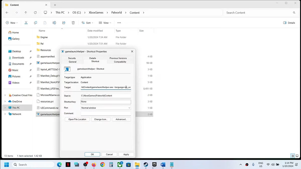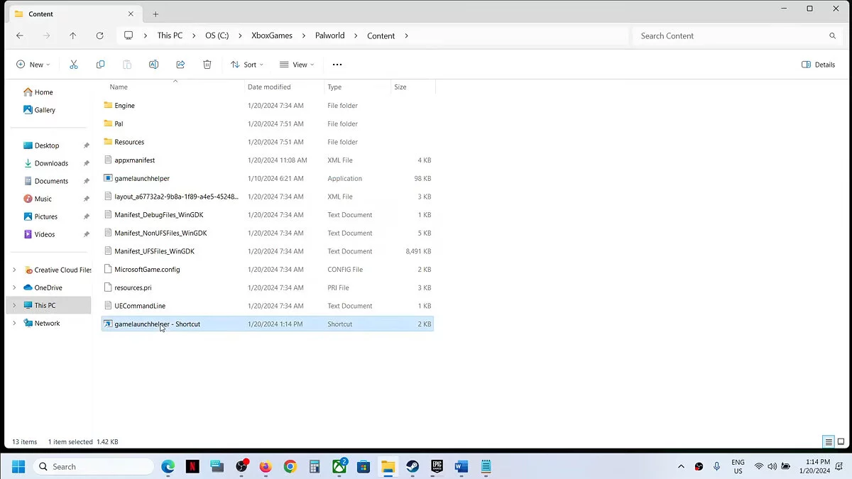 Откроется корневая папка игры, в которой необходимо пройти по пути «/Palworld/Content/», в открывшейся папке найти файл gamelauncherhelper.exe и создать для него ярлык.