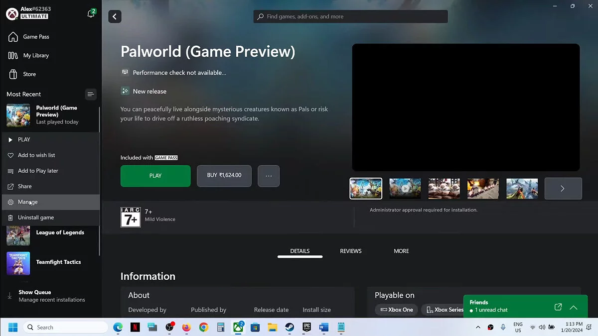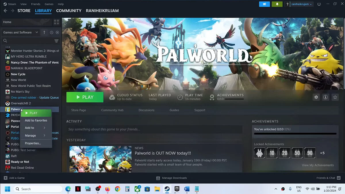 - Нажать правой кнопкой мыши по иконке Palworld.