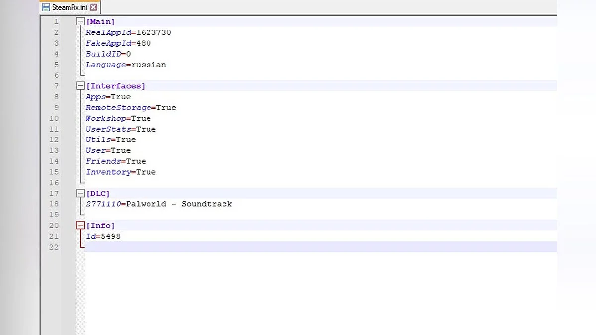 Если данный способ не сработал, рекомендуется тем же способом из папки игры проследовать по пути «/Pal/Binaries/Win64», найти и открыть любым текстовым редактором файл SteamFix.ini, отыскать соответствующую строку и изменить язык на необходимый.