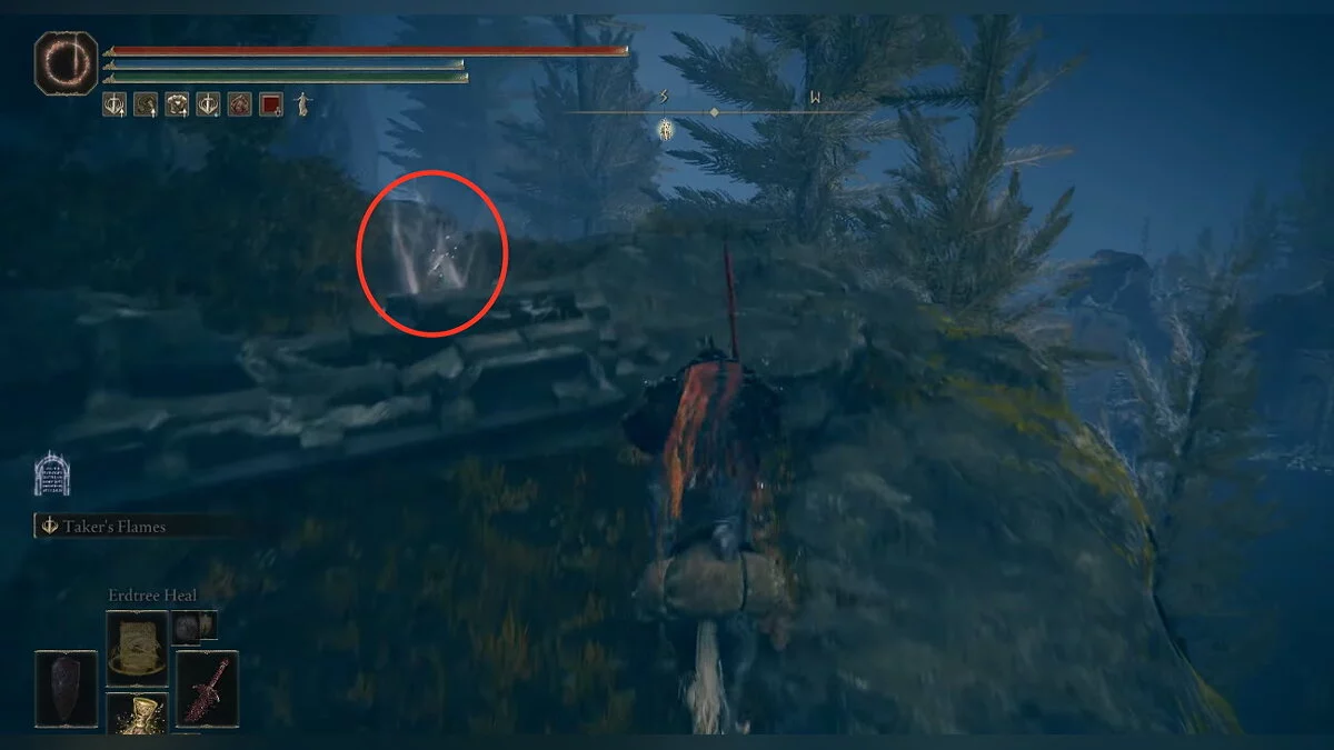 В самом начале прохождения Shadow of the Erdtree вы попадёте на Равнину Надгробий. Активируйте одноимённое место благодати и двигайтесь на северо-восток, пока не окажетесь на территории Обугленных руин.