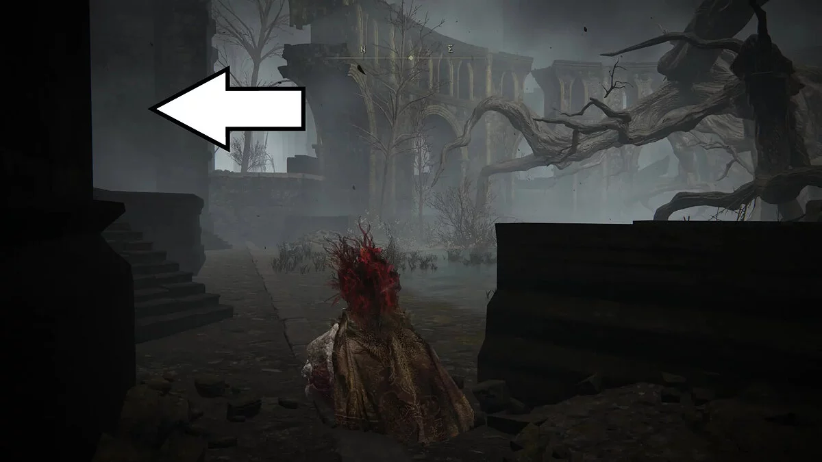 Снова начните с места благодати Затонувшая часовня, но на этот раз идите на восток из часовни, следуя вдоль задней стены вокруг круглой площади слева от вас. По пути вверх по ступенькам вы встретите крабов.