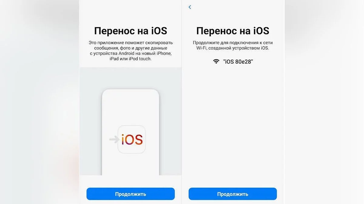 В ходе первичного включения iPhone, устройство автоматически предложит «Перенос на iOS», поэтому приложение также нужно скачать на Android в Google Play.