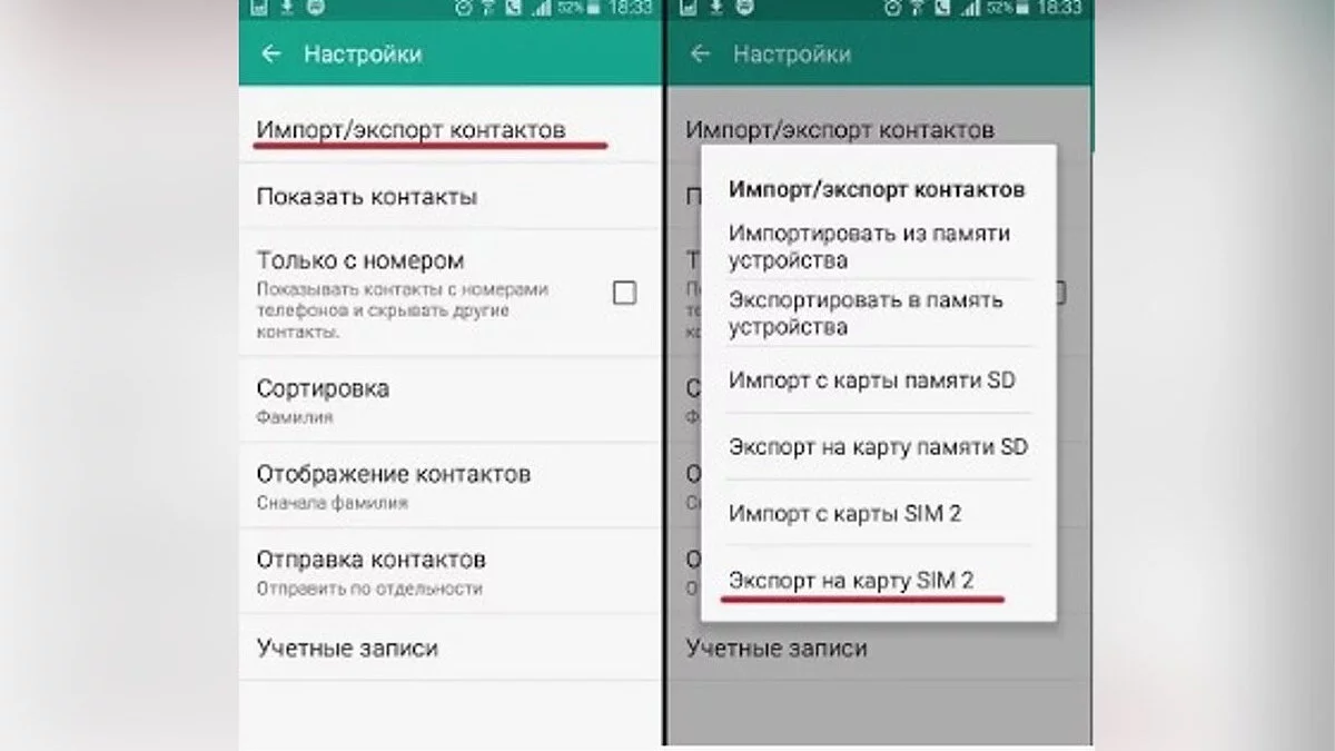 Передача контактов через SIM-карту