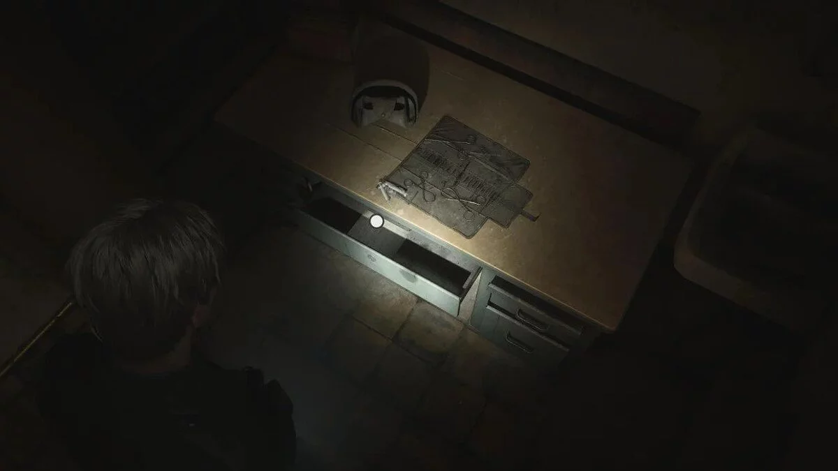Попав в палату D1, вы увидите лестницу, по которой можно спуститься на кухню первого этажа. Здесь вы найдете боеприпасы и лекарства. Через кухню отправляйтесь прямо до зоны хранения медицинский записей. Вы можете попасть в нее через щель в стене. Теперь осмотрите небольшое отверстие в стене. Внутри будет лежать ключ. Его нужно использовать на манекене, который стоит на втором этаже. На карте это место отмечено как «Хирургическое кресло». После этого возвращайтесь обратно на кухню и поднимитесь по лестнице. Вставьте ключ в манекен, чтобы получить другой ключ. Его нужно использовать на замке прикованного ящика.