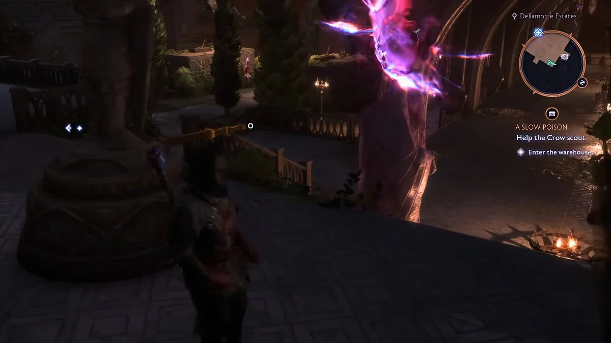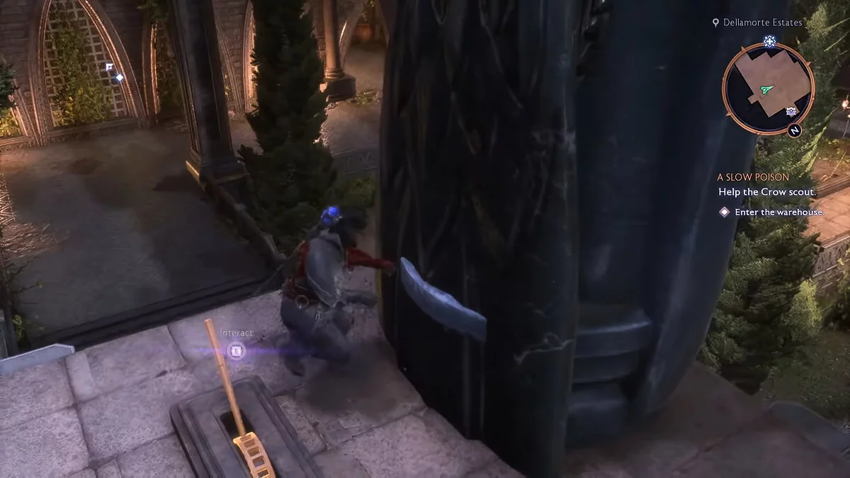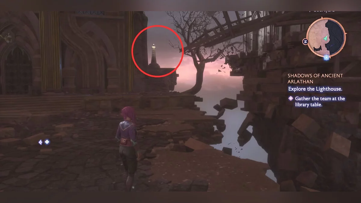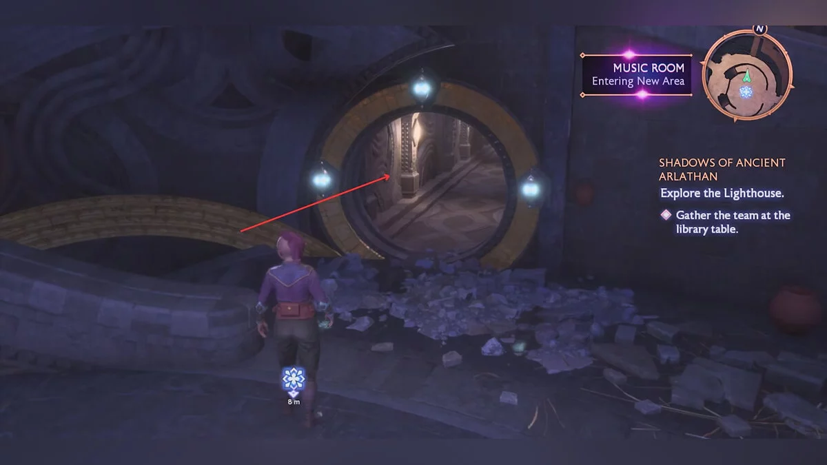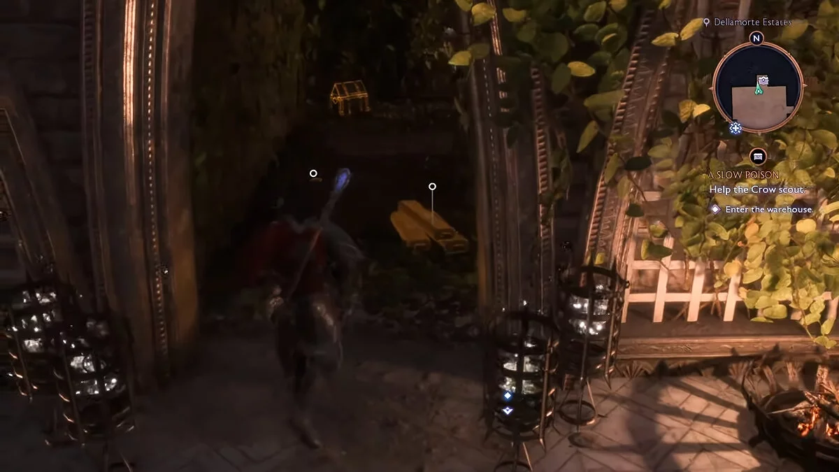 После завершения пролога и беседы с вашими спутниками вам следует покинуть главное здание библиотеки и выйти во двор. Направляйтесь на север карты, обходя слева к зданию с дверью, покрытой виноградными лозами, известному как «Мастерская».