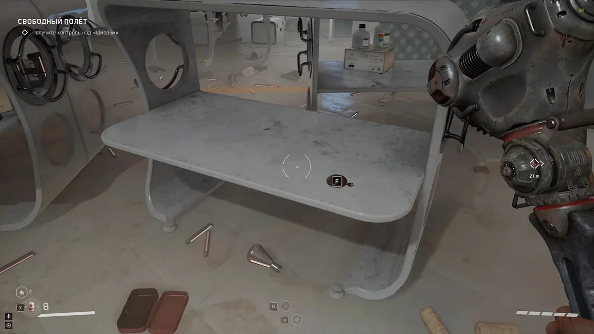 Добравшись до шлюза, который ведёт к рухнувшему мосту, Нечаев свяжется с Николаем и попросит помощи. Вернитесь немного назад. Из двери справа появятся роботы. Расправьтесь с ними и осмотрите помещение. Щебетарь ждёт вас на столе.