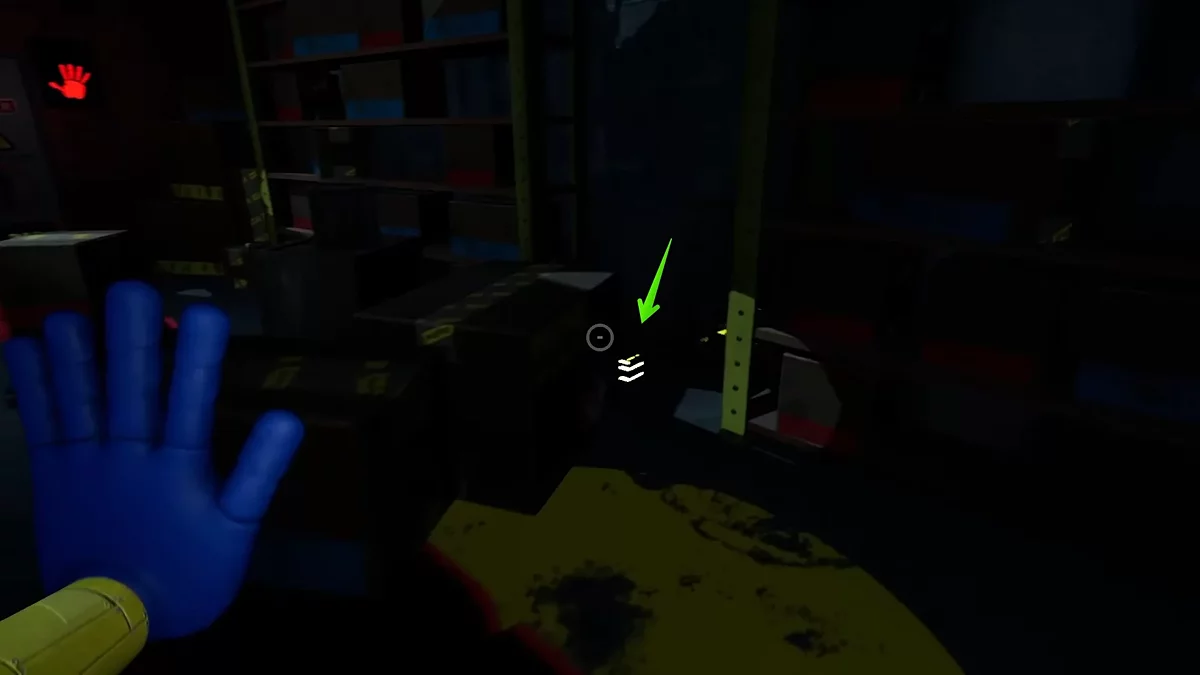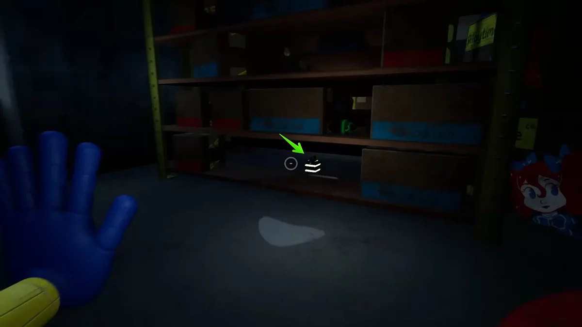 Спрыгивайте вниз, откройте дверь и подберите желтую кассету (опционально). Теперь осмотрите зал и найдите ещё три подобных элемента. В каждом прохождении они могут появляться в разных местах, однако их отличительной чертой является свечение, из-за чего предметы без труда можно обнаружить между тёмных полок.