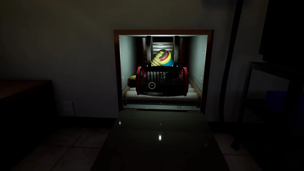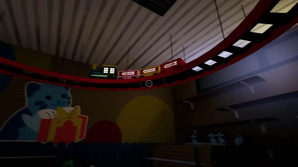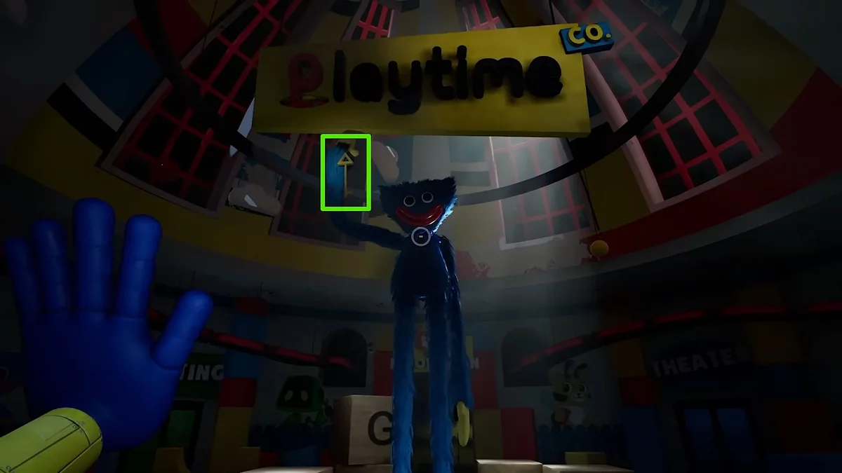 Сделав это, спуститесь вниз и взаимодействуйте с тремя рычагами и дождитесь, пока машины соберут игрушку. Заберите её на выходе и вставьте в устройство рядом с запертой дверью. Когда вы попытаетесь пройти вперёд, появится гигантская игрушка. Бегите в обратную сторону и заходите в открывшийся проход в конце конвейера.