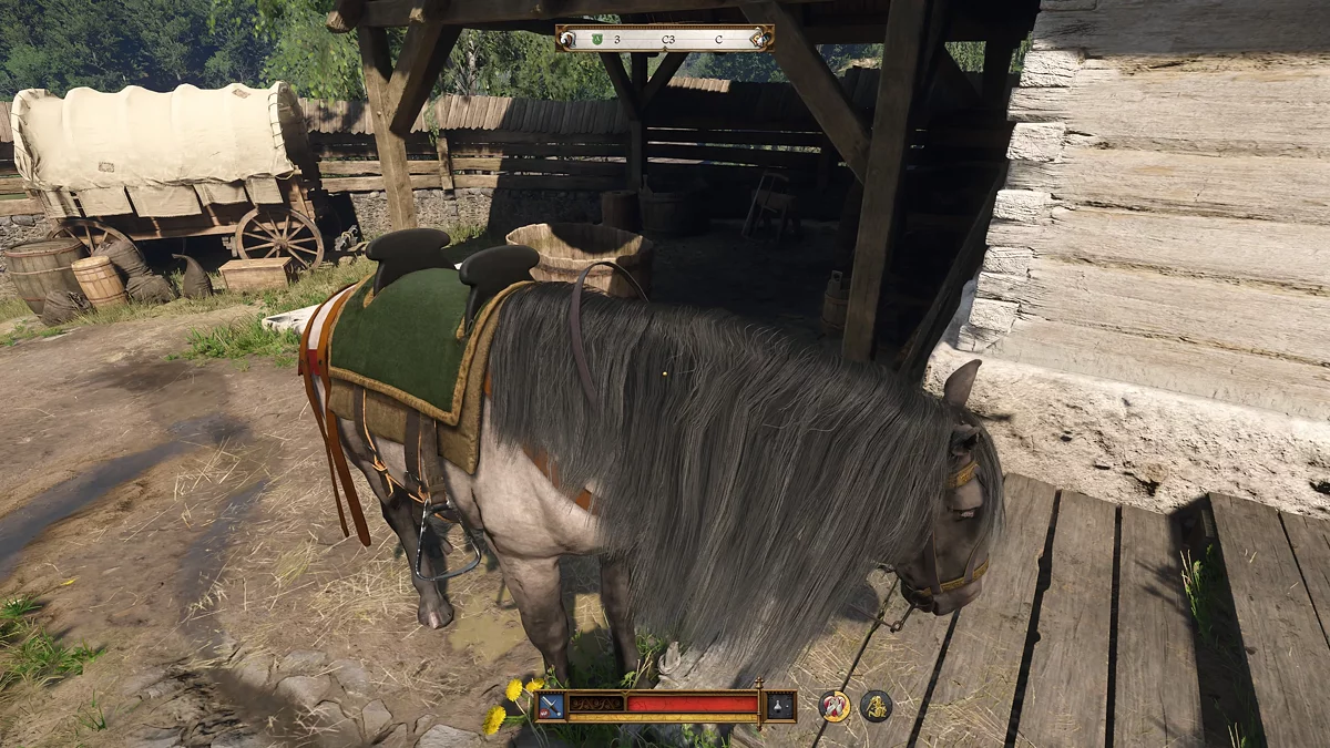 Быстрое перемещение — синий значок с колесом на карте. Оно доступно только в те места, где Генри уже побывал. Есть и второе условие — отсутствие перегруза. Когда вы попадете на другую карту, сможете нанять карету, чтобы вернуться.