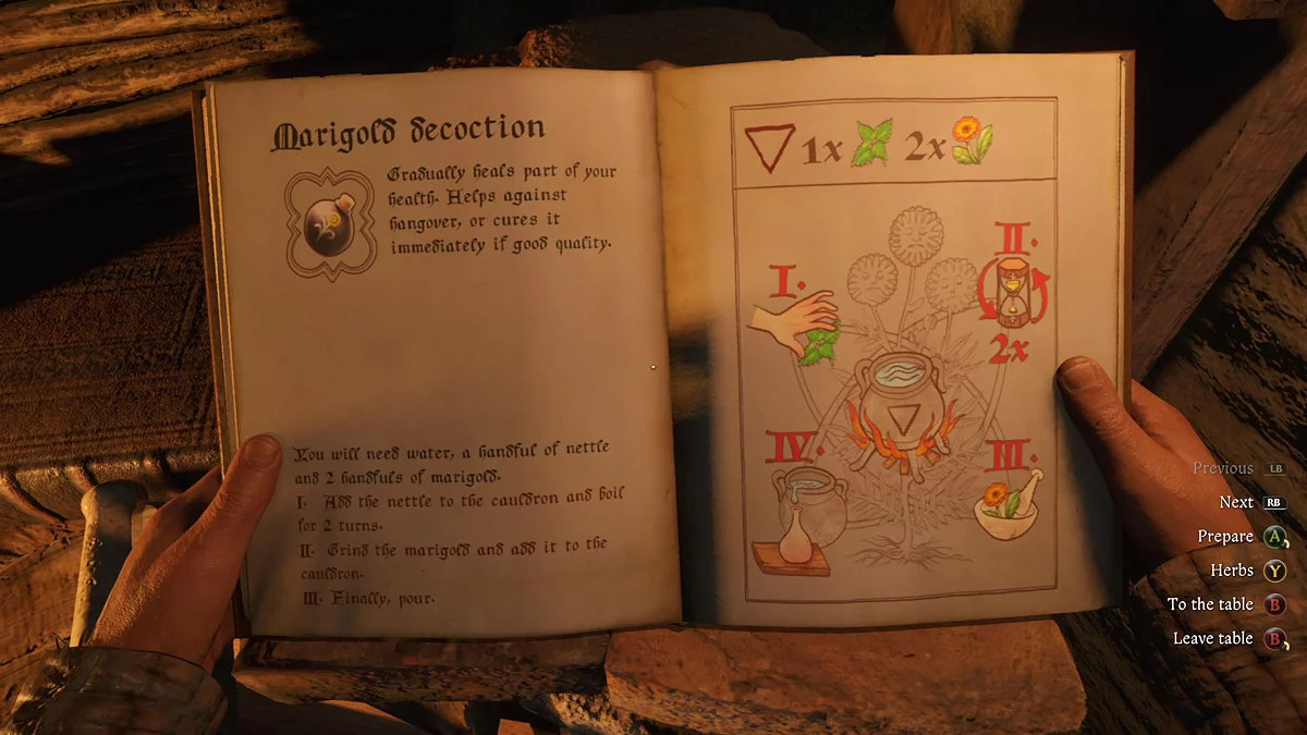 Все сохранения осуществляются через шнапс, которые ещё надо где-то достать, однако есть способ проще. Нажмите «Сохранить и выйти» в главном меню. Так вы сможете сделать это бесплатно. Кроме того, шнапс можно крафтить через алхимию, а рецепт вы узнаете в самом начале игры. Сам рецепт довольно прост, а все ингредиенты можно обнаружить неподалеку от деревни.