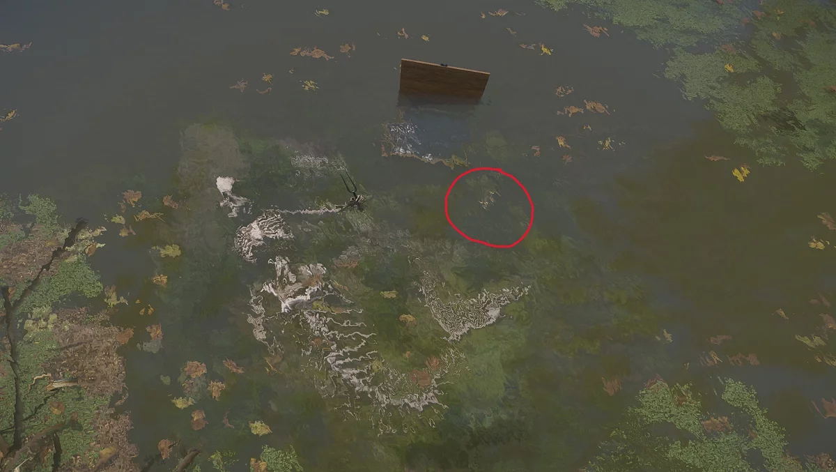 Это и есть нужное место. Затем справа от дерева через ручей найдите деревянную купель, обойдите её справа.