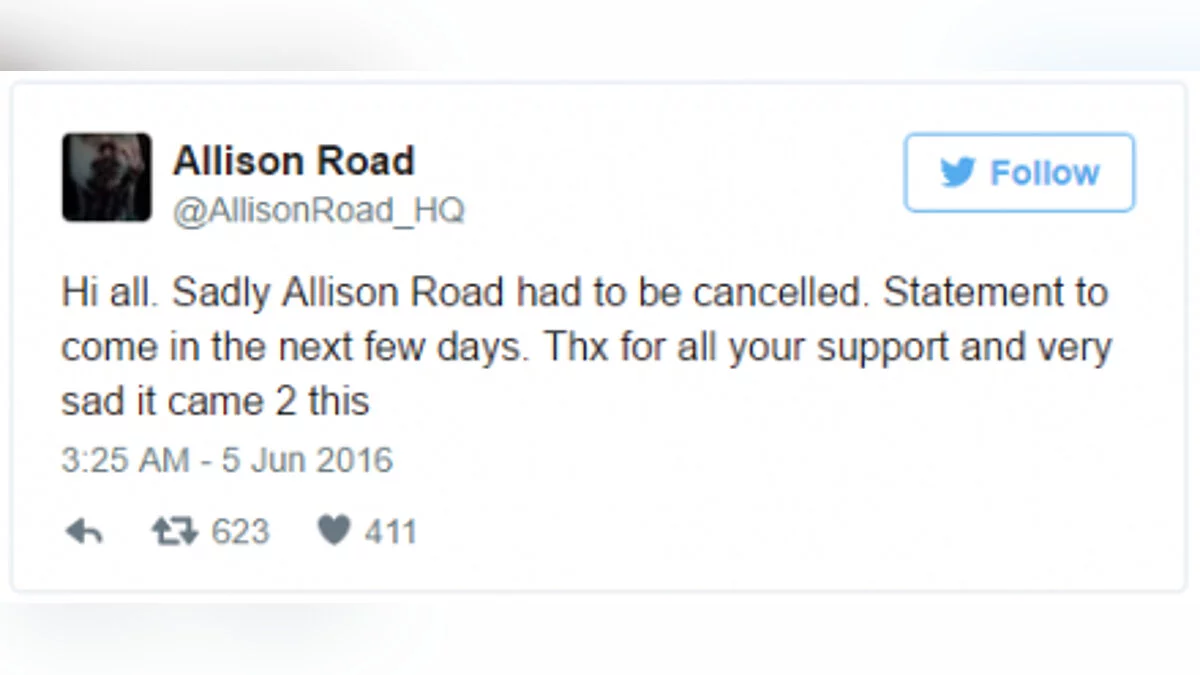 Студия-разработчик Lilith заявила об отмене своего проекта — Allison Road — хоррора от первого лица, вдохновлённого игрой Хидео Кодзимы — P.T. Девелоперы толком не сообщили причину, которая заставила их закрыть проект, а официальное заявление о прекращении работы над игрой будет опубликовано только через несколько дней.