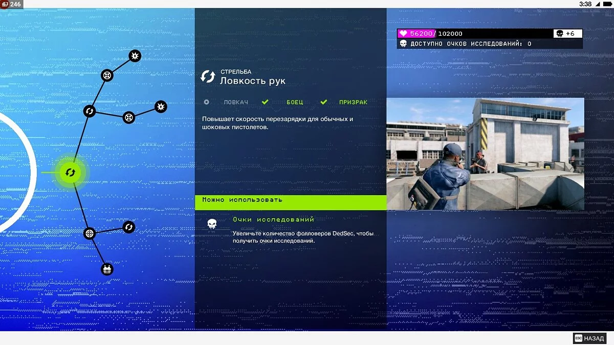 Чтобы избежать необходимости проходить один и тот же момент множество раз, стоит правильно вложить первые очки исследований. Потратьте их на отвлечение внимания противников с помощью взлома телефона, изучите нитро-впрыск для упрощения ухода от погони, а также не забудьте развить способность быстро перезаряжаться — без нее выжить под огнем будет очень трудно.