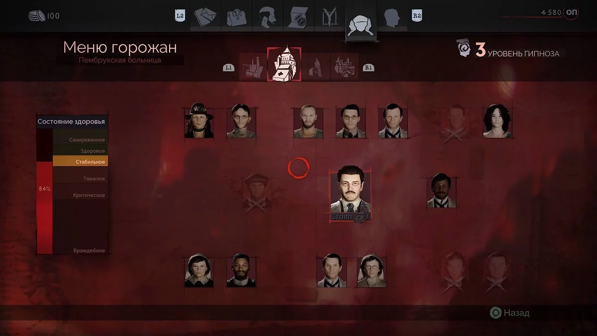 По сюжету, главный герой Vampyr является известным доктором, а поэтому способен исцелять врагов от различных недугов. Учитывая, что зачастую вы будете убивать людей, лечить их также нужно довольно активно. В диалоге с персонажем просто поинтересуйтесь у того, не требуется ли ему медицинская помощь. Если персонаж чем-то болеет, он попросит у вас лекарство. Здоровье неигрового персонажа особенно важно, если вы собираетесь полакомиться его кровью (кровь здорового персонажа дает больше опыта). От уровня здоровья персонажей также зависят цены в магазинах (чем здоровее NPC, тем меньше стоимость предметов при покупке). Рекомендуем вам всегда запасаться как можно большим количеством лекарств, чтобы всегда иметь возможность исцелить горожанина. Кроме того, исцелив десять персонажей, вы получите на PlayStation 4 серебряный трофей «Клятва Гиппократа».