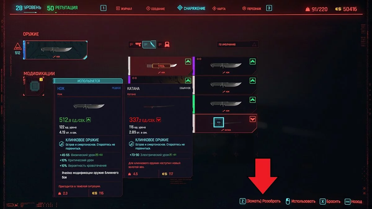 Как разбирать предметы и оружие в Cyberpunk 2077