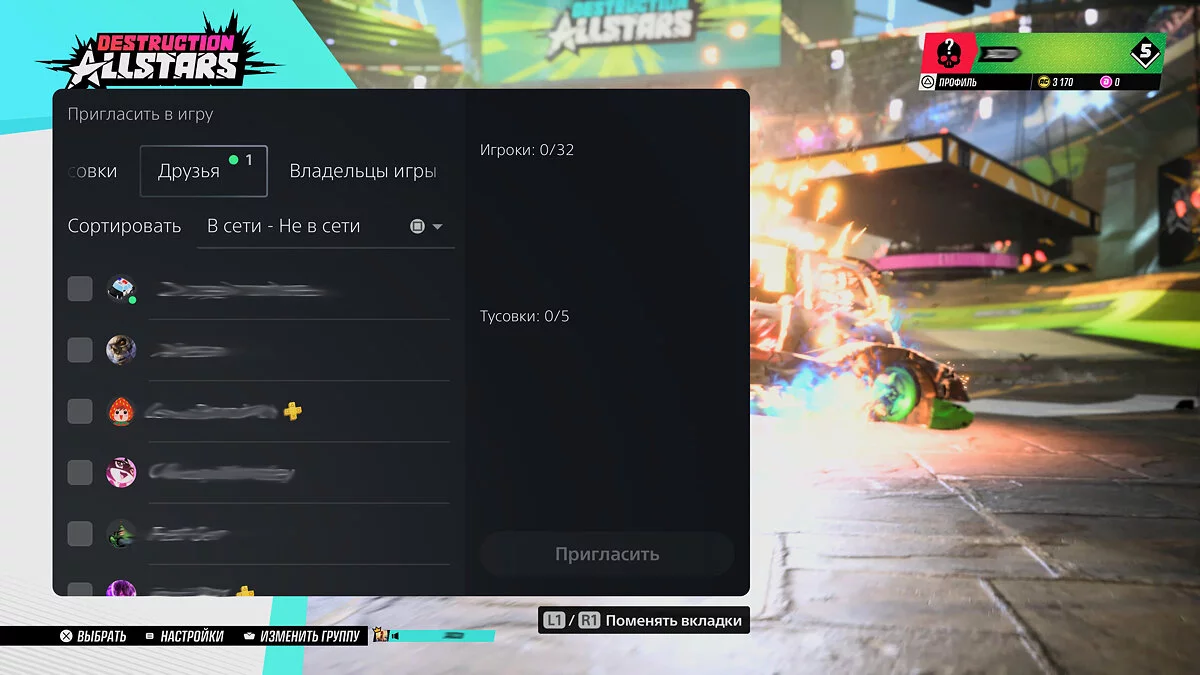 Как пригласить друзей в Destruction AllStars