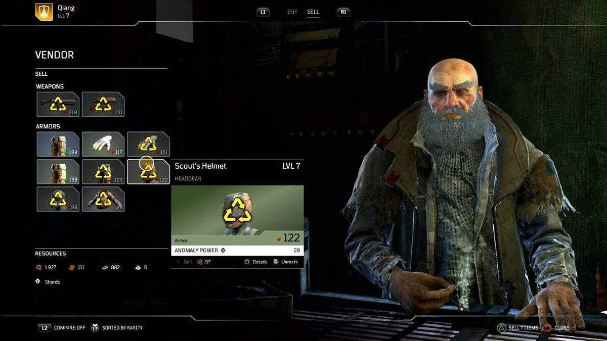 Также вы можете продать любое старое оружие или броню, которые вы не используете, любому из торговцев в вашем базовом лагере. Просто поговорите с ними, выберите предмет из своего инвентаря и нажмите соответствующую кнопку, чтобы продать его. Продавцы в Outriders отмечены на мини-карте значком доллара. Вы можете массово продавать свои предметы. Отметьте в инвентаре вещи, которые вы хотите продать, а затем завершите сделку.