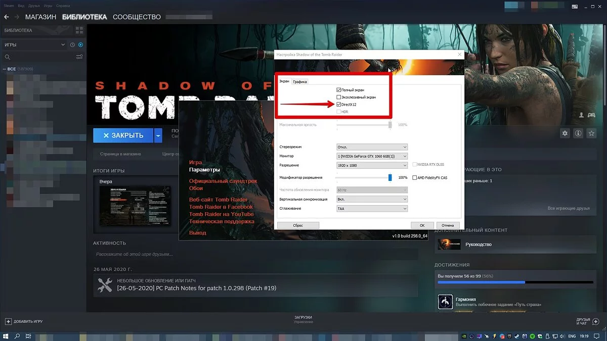 Это не совсем настройка самой Windows, но она с ней тесно связана. Речь идет о DirectX 11 и 12, также Vulkan. Сменить версию API можно в некоторых играх, которые это поддерживают. Например, Shadow of the Tomb Raider или Red Dead Redemption 2. На разных API производительность может отличаться. Например, игры на Vulkan, как правило, работают быстрее.