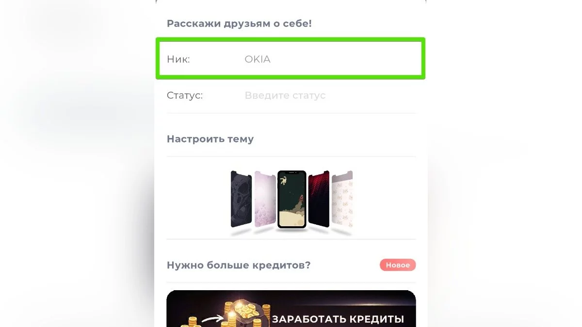 Ричи попросит вас просто назвать своё имя. Для выбора имени вернитесь на главный экран телефона, перейдите в раздел «Профиль» и впишите свой ник в соответствующую строку.