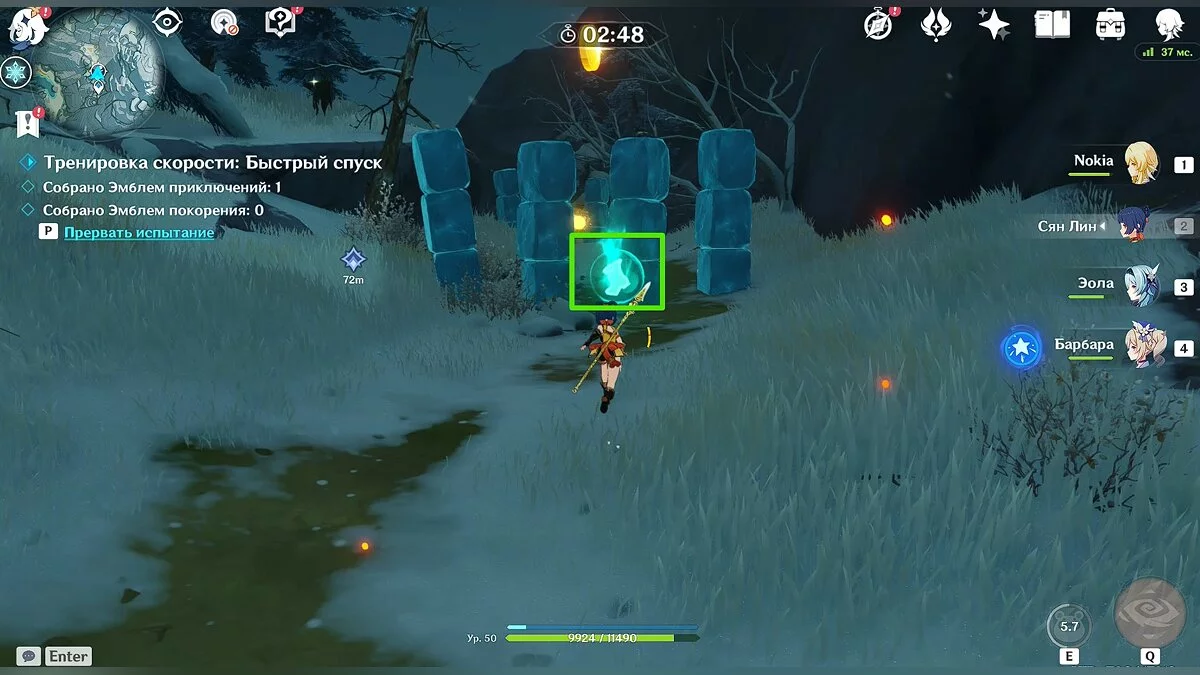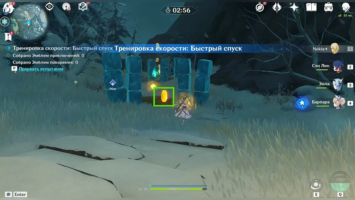 - Благословение твёрдости (значок желтого цвета): позволяет разбивать ледяные колонны в небольшом радиусе действия. При активном благословении подойдите максимально близко к колонне, в которой находится Эмблема приключений. Колонна будет разрушена, а вы сможете забрать эмблему.