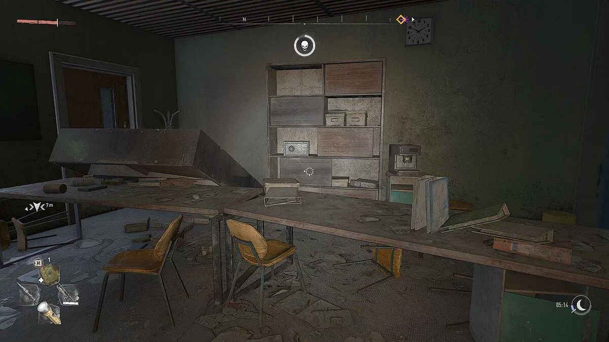 На небольшом уровне прокачки персонажа попасть в здание можно единственным способом — через автобус в стене. Поднимитесь на третий этаж и найдите разбитое окно, при помощи которого можно забраться в кабинет.