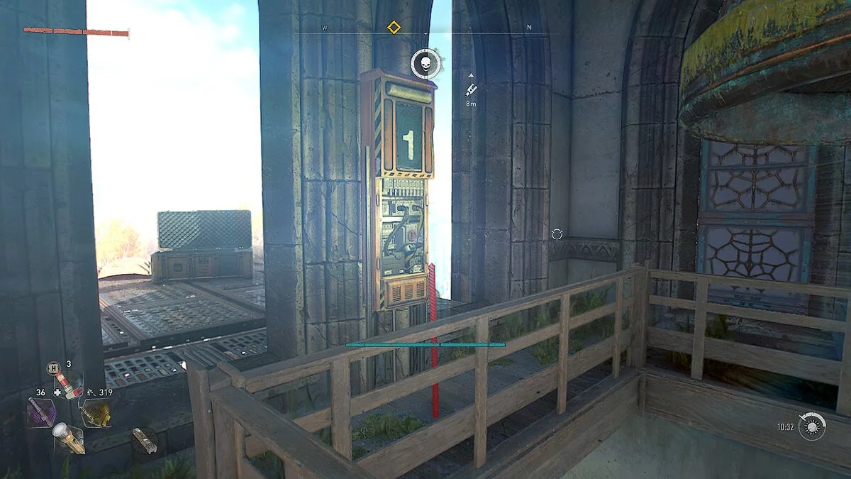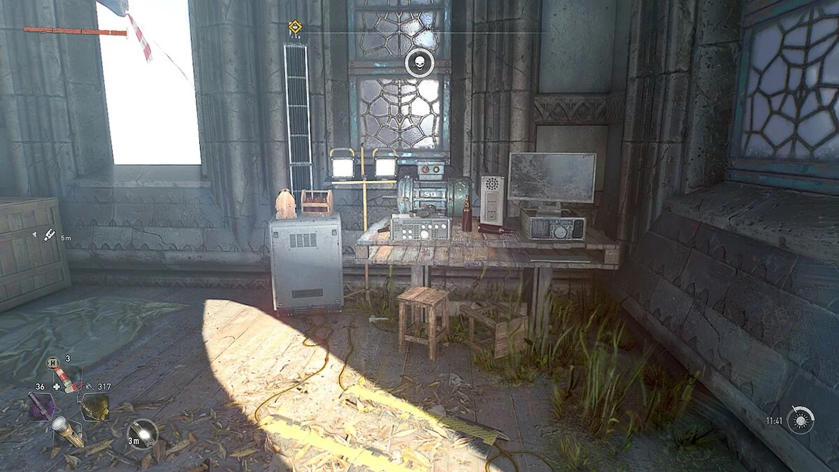 Вы увидите устройство, при помощи которого нужно запитать радиостанцию в часовне. Возьмите кабель и следуйте наверх по балкам и уступам. Активируйте второй передатчик при помощи кабеля и заберитесь ещё выше. Здесь вы найдёте радиостанцию.