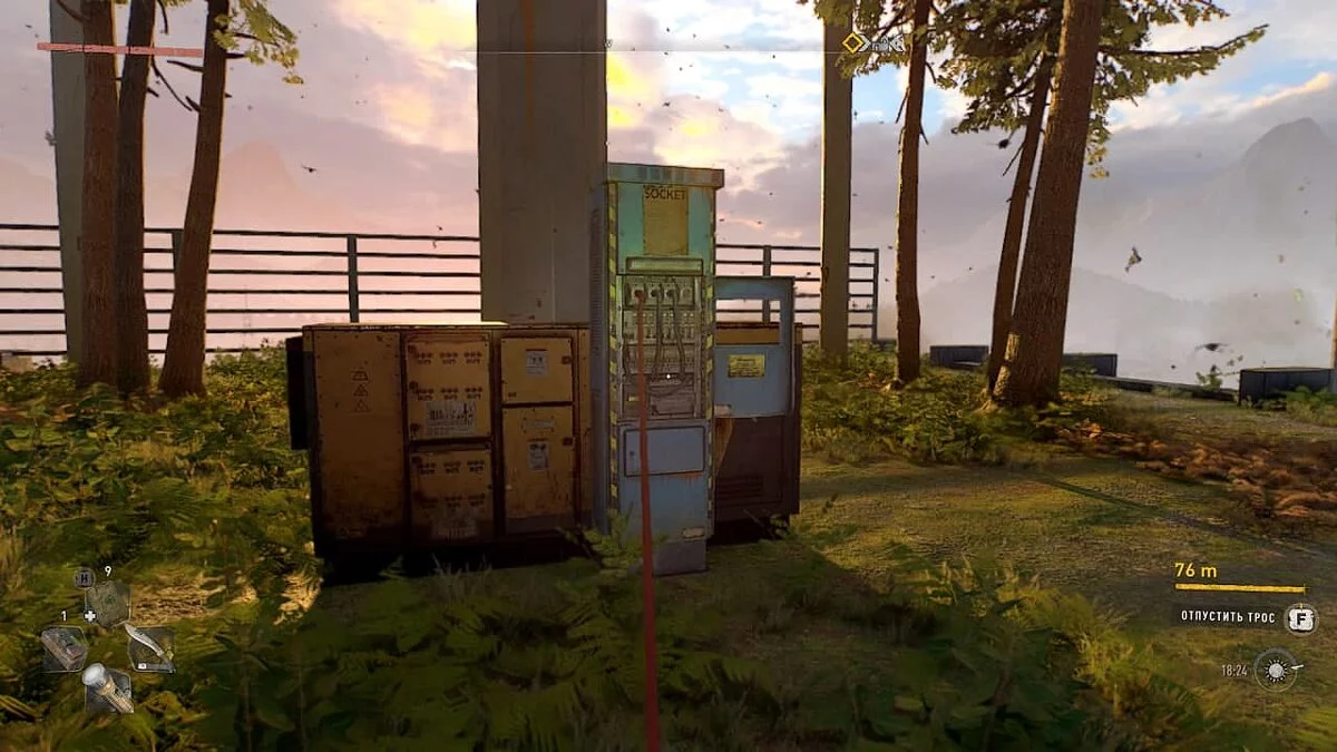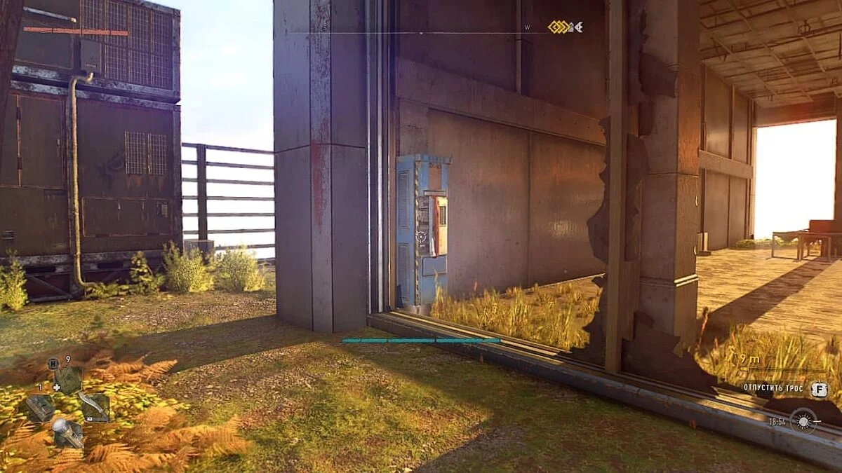 - Берите следующий шнур. Он находится в противоположном углу здания. Взаимодействуйте с устройством.
