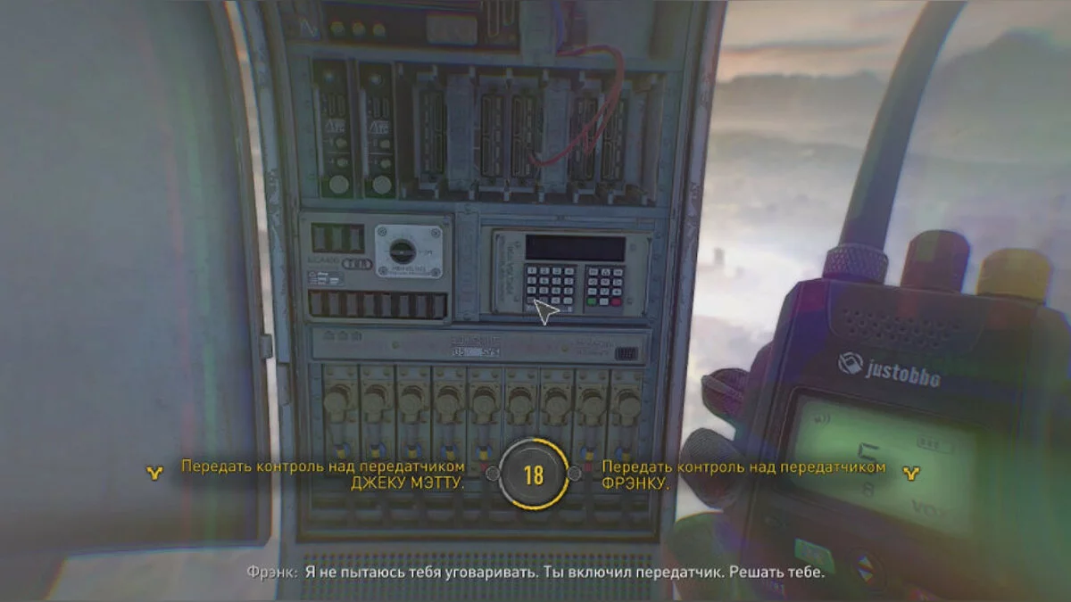 В предыдущих главах вы должны были выбрать путь: помочь Джеку Мэтту с его планом использовать телебашню в интересах Миротворцев или же Хуану со слежкой за Джеком. Между ними и придется выбирать. Все становится не так просто, когда в списке появляется Фрэнк, и выбор становится не так очевиден, а его последствия — весьма серьезными.