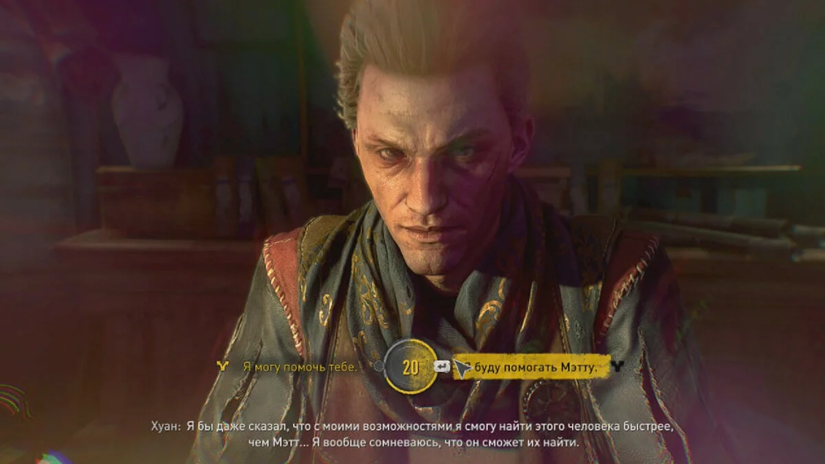 Этот выбор доступен, только если ранее вы согласились помочь Хуану в слежке за Джеком Мэттом во время квеста «Добро пожаловать на борт». Далее вы встретитесь с бывшим ученым по имени Курт, который даст жучок для слежения во время квеста «Собор».