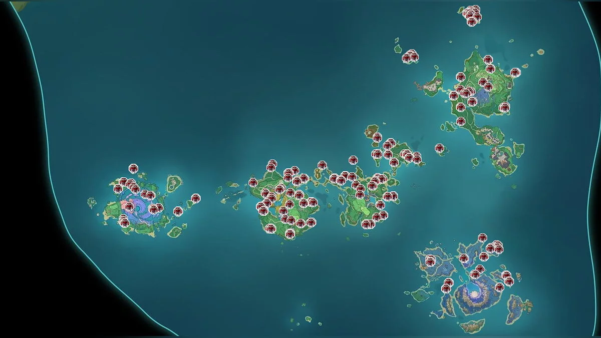«Морские грибы» можно найти на побережье и в мелководье островов Инадзумы. Места, где их стоит искать, мы указали на карте.